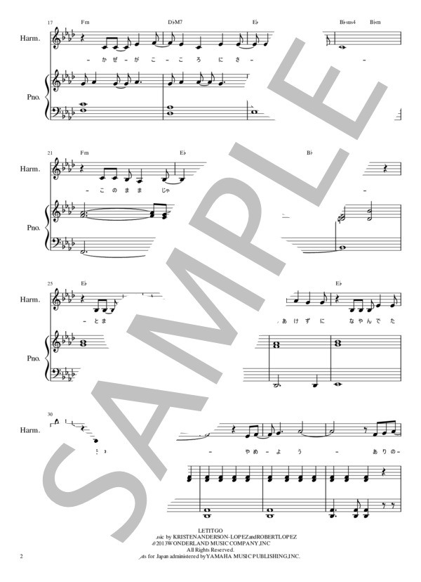 楽譜 レット イット ゴー ありのままで ト長調 松 たか子
