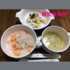 離乳食後期 9ヶ月 メニュー 五目おかゆ 豆腐とわかめのお味噌汁